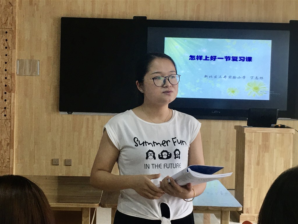 毛鹤茜、周红、和刘艳三位老师还进行了期末复习的经验分享。毛老师就如何上好复习课提炼了以下几点:一、合理安排一节课的复习内容。二、全面、具体地确定课时教学目标。三、逻辑地设计复习课的过程。周老师提出让复习成为一种习惯,做到四个为主:以学生为主、以课本为主、以课内为主、以精讲精练为主。刘老师认为只有激活分散的知识点、建构完整的“知识链”、明晰知识背景与过程,才能上好一节复习课。