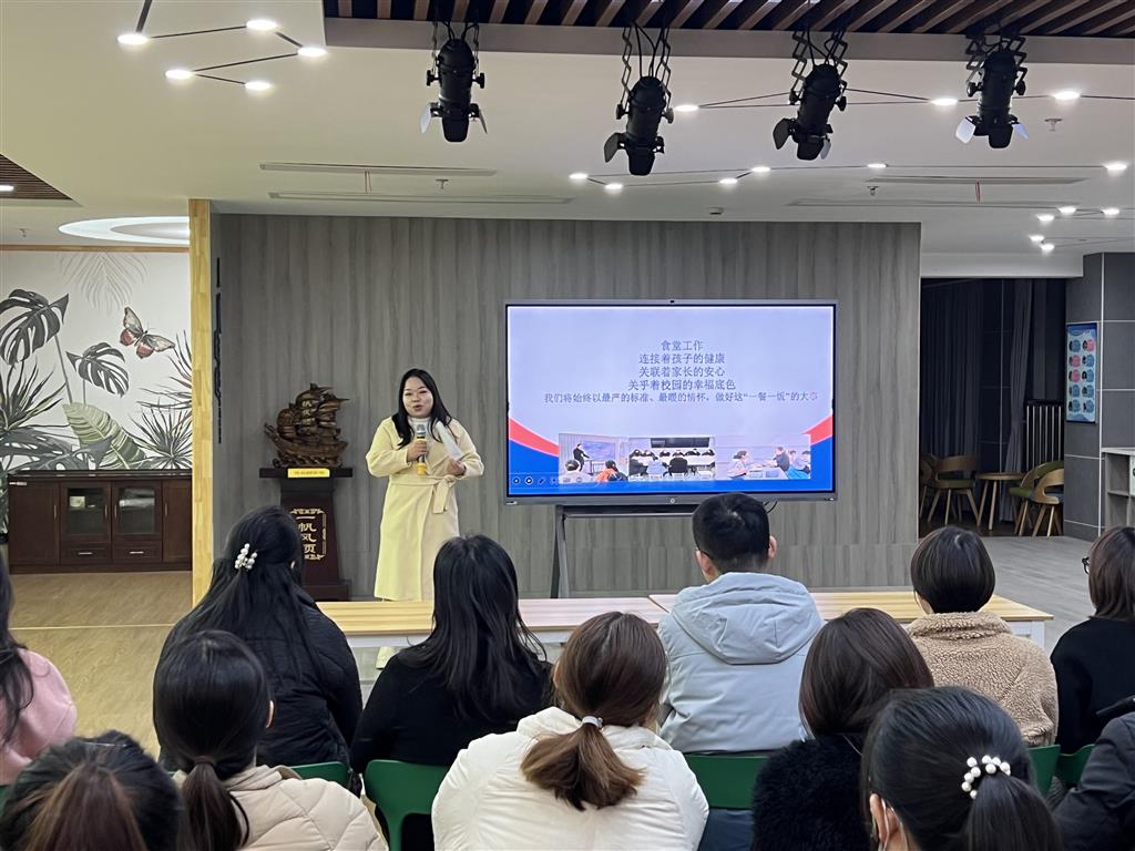 各校区食堂负责人黄夏淯、黄斌、杨春芳及万俐分别向与会家长系统介绍了食堂自营后的管理体系,即“一个资金监管平台、一批服务运营团队、一批经区级统一招募的食材供应商”。结合食堂“五常法”管理要求,详细说明了日常落实细则,并清晰展示了从食材验收、加工制作到餐具消毒、食品留样等全流程标准化操作。通过每日巡查与常态化培训,学校持续提升食堂工作品质,确保各项制度严格执行。此外,学校坚持以学生满意度为导向,定期开展菜单调研与优化,力求菜品丰富多样、口味适宜。